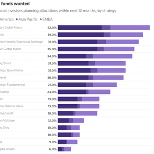 报告称,约五分之二的受访者打算投资宏观经济,并补充称,对政府债券交易的兴趣有所下降。与此同时,交易大宗商品和股票的基金分列第二和第三。
