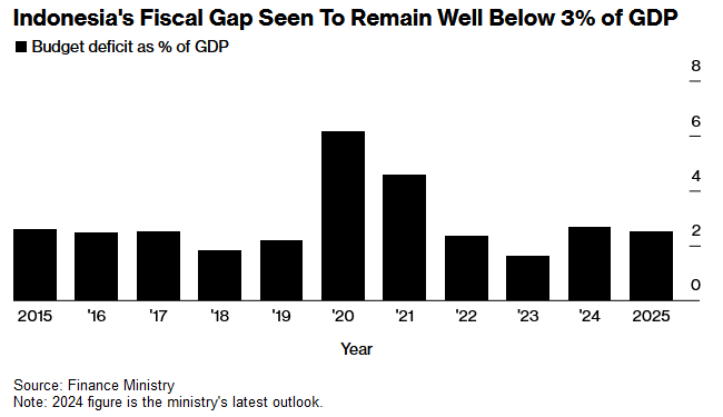 不过,在周四早些时候,印尼财政部长Sri Mulyani Indrawati淡化了市场的这些担忧,称2024年的预算赤字可能会比官方估计的占国内生产总值(GDP)2.7%的这一比例“小得多”。她表示,政府收入在去年下半年有所恢复,抵消了政府支出的增加。