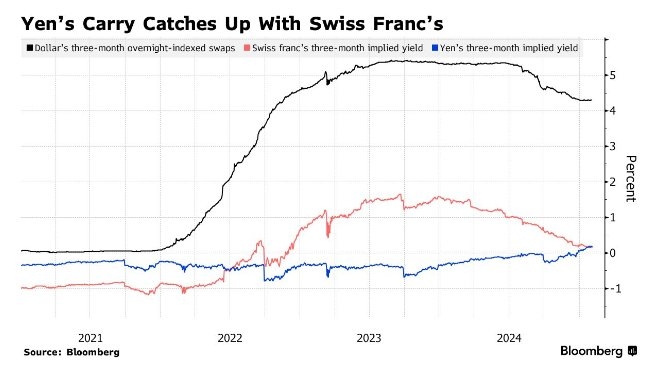 “日元如此便宜,而瑞士法郎又如此强势,这使得日元更受青睐,”Berry表示,“日本央行仍处于紧缩模式,这也为日元提供了支撑,”而瑞士央行正在放松政策。