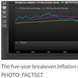 根据FactSet的数据,衡量未来五年通胀预期的五年期盈亏平衡通胀率在周二录得2.6%,并且自2023年10月底以来,一直维持在其50日和200日均线上方。这一趋势表明,通胀可能会在未来几年持续高于美联储设定的2%目标。