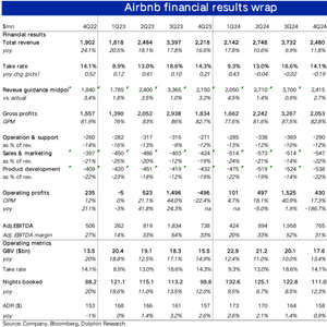 北京时间2月14日美股盘后,Airbnb爱彼迎(ABNB.US)公布了2024财年四季度财报,不仅当季业绩表现强劲,对2025年利润率的指引也显著好于预期,亮点不少,详细要点如下: