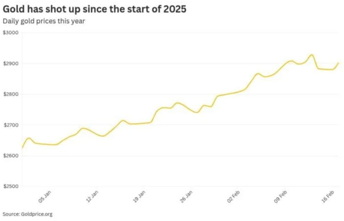智通财经注意到,黄金价格在2025年已经上涨了10%,达到2900美元,但瑞银再次上调了黄金的目标价格。