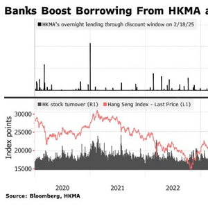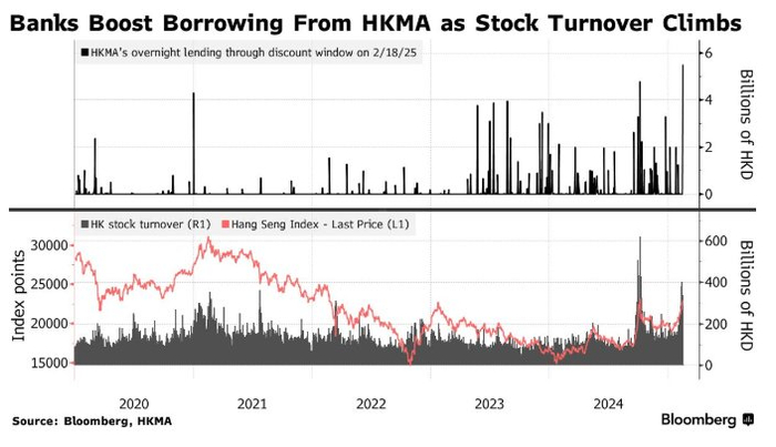 随着港股交易量飙升,银行加大力度向香港金管局借款