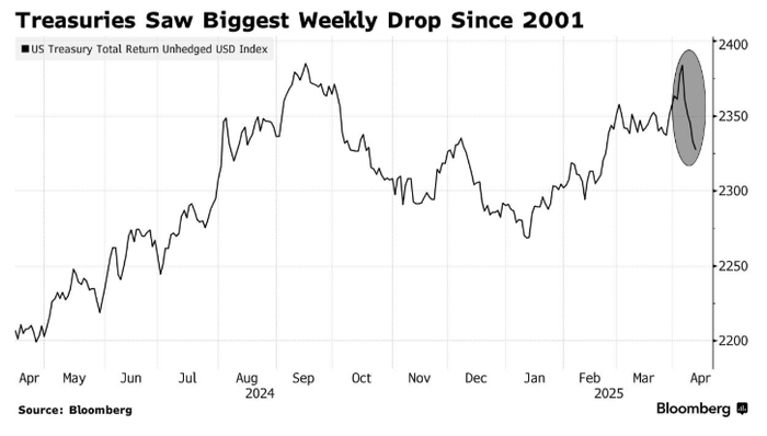 上周美债市场创下2001年以来最大单周跌幅,伴随美元同步走低——部分金融市场参与者将此趋势视为国际资本对美元资产信心大幅减弱的信号。