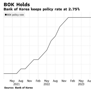 韩国央行周四将七天回购利率维持在2.75%。在彭博此前对于24位经济学家的咨询调查中,15人预测按兵不动,其余9人预测降息25个基点。决议公布后,韩元汇率呈现出反复波动,而韩股涨幅扩大。