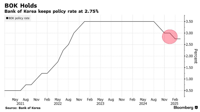 通胀抬头与韩元贬值双重夹击 韩国央行“按兵不动” 但关税阴云下倾向降息路径