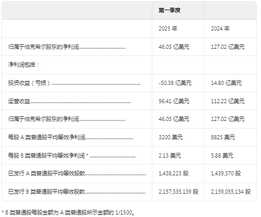 伯克希尔・哈撒韦公司及其合并子公司 2025 年和 2024 年第一季度的收益总结如下。收益均按税后计算。(除每股金额外,美元金额单位均为百万)