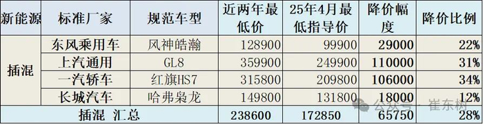 2025年4月份插混车型新车降价的均价是17.3万元,降价幅度达到6.6万元,新车降价力度达到28%。降价车型总体力度相对温和,但价格逐步形成头部领军企业同步的价格水平,这样的降价是必然的趋势。