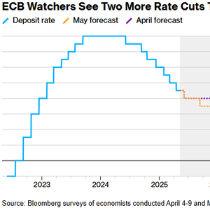 官员们最近对通胀发表了乐观的言论,并准备进一步降低借贷成本,下一步行动可能在6月。由于欧洲经济疲软,尤其是受到美国总统特朗普贸易关税的影响,市场预计今年还会有两到三次降息。