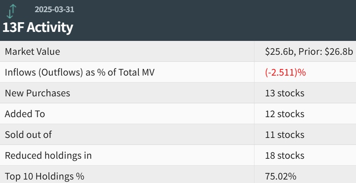 据统计数据,PIF第一季度美股持仓总市值达到256亿美元,上一季度的持仓总市值则约为268亿美元,环比减少近5%。详细数据显示,PIF的持仓组合中新增13只个股,增持了12只个股,减持了18只个股,清仓了11只个股。其中前十大持仓标的占美股总持仓市值的75.02%,反映出PIF前十大持仓的总计权重非常高。