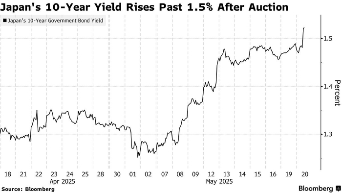 拍卖结果出炉后,基准10年期日本国债收益率一度上涨至1.525%,为3月底以来的最高水平;20年期日本国债收益率飙升约15个基点,至2000年以来的最高水平。