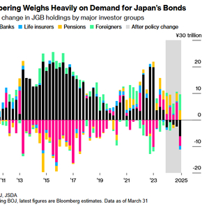 尽管外国投资者在4月份购买了创纪录数量的超长期日本国债,但他们在市场中的份额仍然很小。日本的寿险公司并没有填补这一空缺,因为大多数大型寿险公司都在减持国内债券。策略师Mark Cranfield指出,尽管全球资金一直在涌入日本长期债券,但超长期日本国债却遭遇了类似于国内买家罢工的情况。
