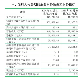 财务方面,于 2022年度、2023年度、2024年度,公司实现营业收入分别约为9.88亿元、13.76亿元、14.97亿元。公司净利润分别约为1.96亿元、2.68亿元、2.56亿人民币。