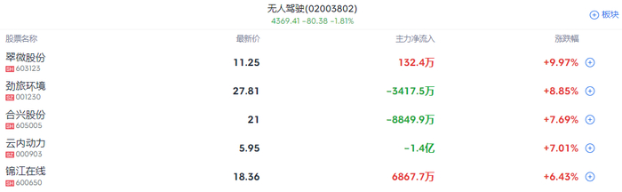 无人驾驶概念持续活跃,云内动力5连板,启迪环境、合兴股份涨停,通达电气、福龙马、锦江在线等跟涨。