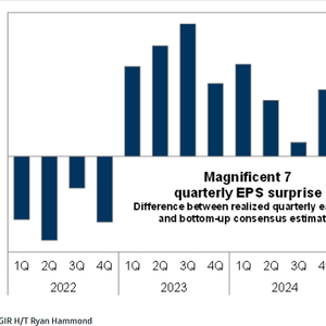 高盛于5月31日发布的市场洞察文章指出,随着我们正式进入夏季,我正在关注“七巨头”开始跑赢大盘。超级大型科技股将充当“防御性增长代理”,这正是投资者在未来高度不确定时期所需要的。盈利表现非常出色——七巨头刚刚发布了自 2023 年第三季度以来最佳的季度正向每股收益惊喜……