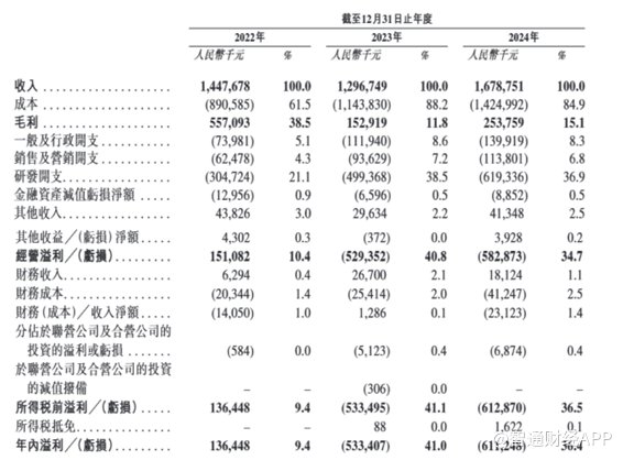 据招股书显示,2022至2024年,杰华特的营业收入分别为14.48亿元人民币(单位,下同)、12.97亿和16.79亿元,年复合增长率为7.69%。但同期净利润从盈利1.36亿元一路下滑至2024年的亏损6.11亿元,并且亏损幅度持续扩大。