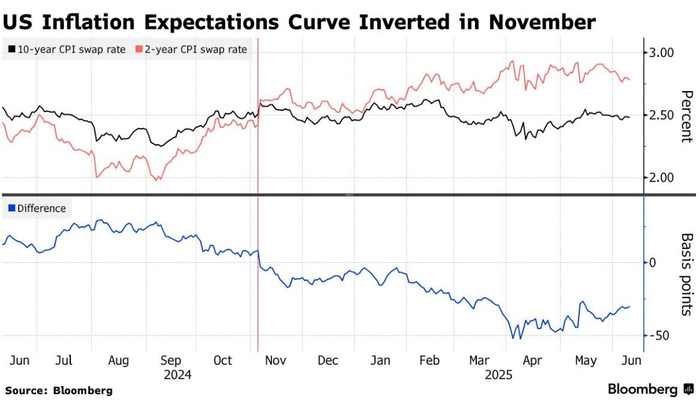 如果周三公布的5月消费者价格指数(CPI)显示通胀低于经济学家的预期,这一交易策略可能很快达到目标。策略师写道,5月CPI数据"对于理解关税对核心商品价格的初步影响至关重要"。