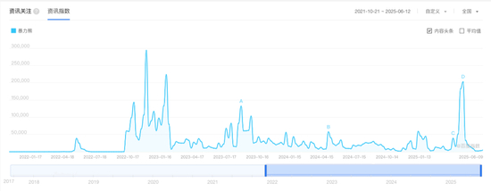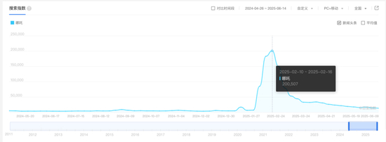 从2025年1月底开始起热度,到2月16日当周达到峰值,然后在3月23日进入肥尾阶段,火爆持续时间2个多月,接近3个月。