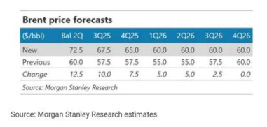 在前几版《石油手册》中,大摩曾指出,到 2025 年第四季度石油市场有出现过剩的可能性,且过剩情况在 2026 年还会进一步加剧。为限制这种供应过剩,预计布伦特原油价格需要降至能刺激需求、放缓非欧佩克产油国供应,和 / 或促使欧佩克 + 恢复更积极的市场管理的水平,或是这些手段的组合。大摩原本预计,油价需要在一段时间内处于 55 - 60 美元 / 桶区间。