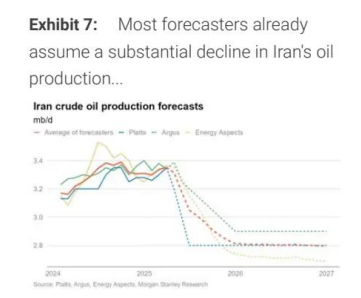 大摩发布研报称,以色列与伊朗之间军事活动的增加,为未来油价走势开辟了广泛的可能性,在此之中,预见了三种 “锚定” 情景:首先,军事冲突不一定会干扰石油流动。如果该地区的出口未受影响,油价可能会回落至每桶60美元;其次,伊朗出口可能大幅减少,这可能会消除明年的全球供应过剩,在市场平衡的情况下,油价将在75-80美元左右波动;最终,这场冲突可能会使更广泛的海湾地区的石油出口面临风险,在这种情况下,2022年式的油价也并非不可能。