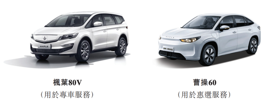 目前,曹操出行主要运营两款定制车,即枫叶80V及曹操60。