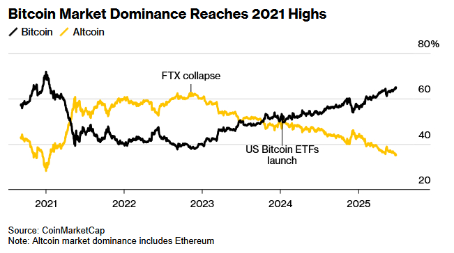 加密市场冰火两重天!比特币狂飙 山寨币退潮
