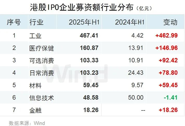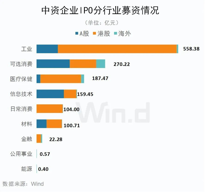 从登陆港交所的中资企业行业分布看,募资规模以工业企业居多,合计募资467.41亿元。