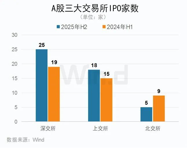 分交易所看,2025年上半年,深交所上市的企业25家,上交所为18家;此外,北交所有5家企业完成上市。