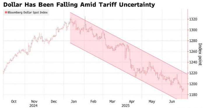 2025 年,美元指数已下跌超过 9%。由于市场加大了对美元未来表现的看空押注。该指数在周三达到盘中高点,此前连续两天下跌后出现反弹,原因是美国总统特朗普提出的 3.3 万亿美元的税收和支出削减法案在参议院获得通过。但该指数随后又回吐了之前的涨幅。接下来,交易员们将把注意力转向将于周四公布的 6 月份非农就业报告。