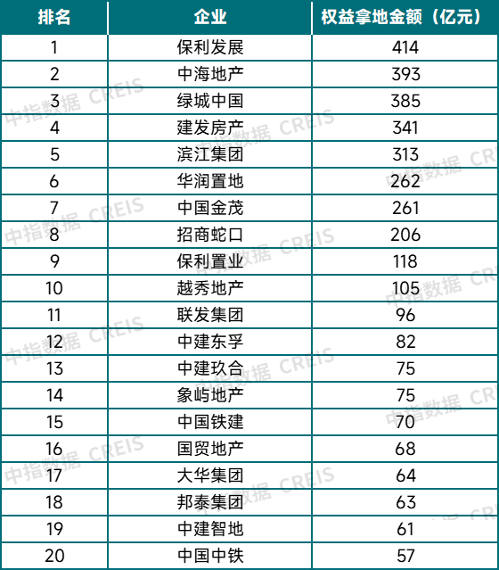 表:2025年上半年权益拿地金额TOP20企业