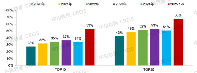 从城市集中度来看,上半年TOP20城市出让金占全国比重约68%,占比明显提升。根据中指数据,2025年上半年,共有19个城市宅地出让金超百亿元,除南通、镇江(多为本土国企获取)外,均为核心一二线城市,其中杭州、北京涉宅用地出让金均超千亿元,杭州出让金已接近去年全年水平。城市集中度来看,上半年TOP20城市出让金占全国比重为68%(2024年全年为51%)。值得注意的是,核心城市土地集中供应或造成后续项目集中入市,竞争或有所加剧。