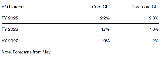 日本央行在5月份发布的最新展望报告中预测,截至3月份的本财年,核心消费者价格指数将上涨2.2%,而未来12个月的涨幅仅为1.7%。这一预测使日本央行能够辩称,在做出加息决策时需要保持谨慎。