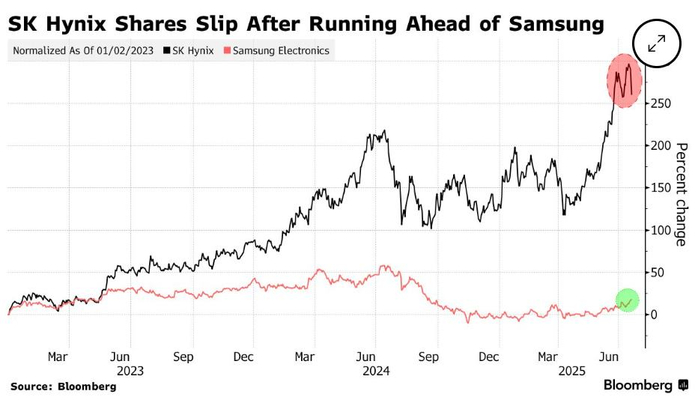 本周阿斯麦(ASML.US)控股公司对行业前景的谨慎表态,直接引发全球芯片股集体下挫,这也成为SK海力士股价承压的叠加因素。高盛分析强调,尽管风险因素持续累积,SK海力士股价今年以来仍以57%的涨幅显著跑赢大盘,同期三星电子涨幅仅为23%。