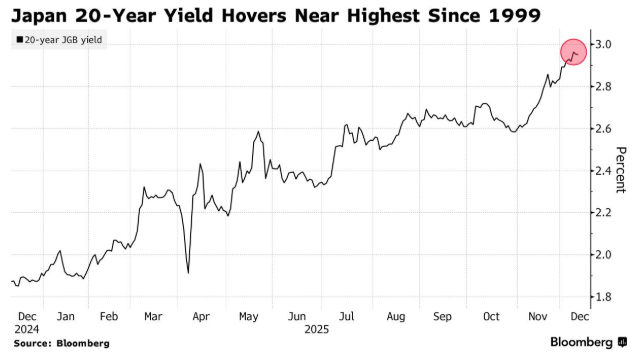 此次日本财务省2025年最后一次长期债券拍卖,是在上周30年期债券发行也获得多年来最强劲需求后进行的。尽管日本首相高市早苗近期公布了疫情以来规模最大的一轮额外支出计划,但政府正通过增加短期债券发行,试图尽量减少对超长期债券市场的冲击。