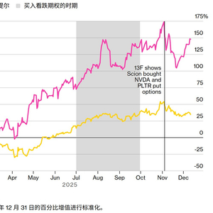 外界无从精确计算伯里赚了多少。他留下的唯一线索是X平台上的一条帖子:自称以1.84美元买入Palantir看跌期权,不到三周这些合约涨幅高达101%。这份13F把原本暗流涌动的疑虑凝结成可见的晶体:在一个由少数AI相关股票、巨量被动资金流入和低迷波动率主导的市场里,怀疑情绪一直潜伏。无论这笔交易最终被证明是先见之明还是操之过急,它都说明一旦信念出现裂缝,再强势的市场叙事也能瞬间反转。——迈克尔·P·雷根