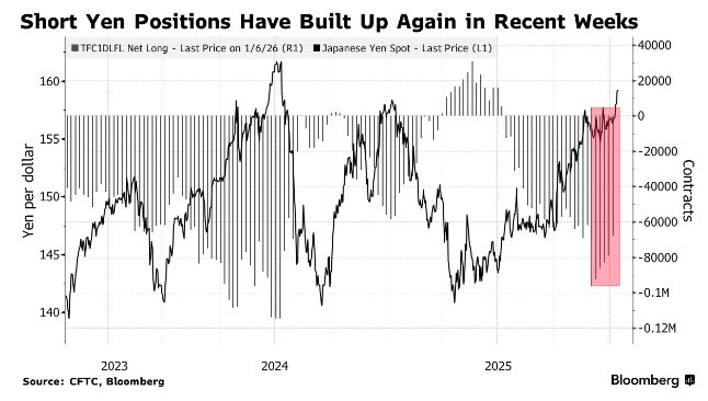 与此同时,花旗银行的日元痛苦指数——一项追踪交易员整体持仓情绪的指标——依旧处于负值区间,凸显出当前日元空头交易的拥挤程度。