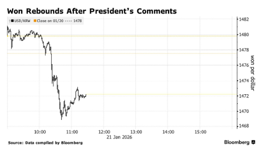 Minhyeok Lee表示,“若格陵兰岛相关事态引发的美元走弱趋势能够延续,韩元反弹的空间将进一步扩大”。
