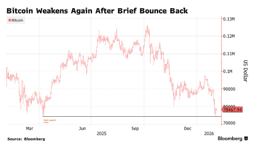 截至发稿,这一主流加密货币价格徘徊在78200美元附近。就在一天前,市场看跌情绪几乎将其推至一年多前(即美国总统特朗普重返白宫)以来的最低水平。