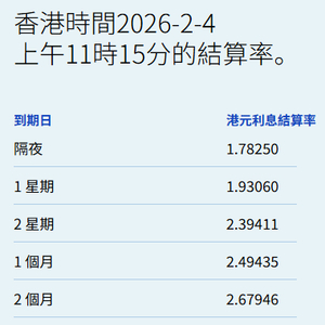 2月4日,港元拆息普遍下跌,而与楼按相关的一个月拆息连跌9个交易日报2.49435%,跌2.559基点;反映银行资金成本的三个月拆息报2.74179%,跌0.66基点。