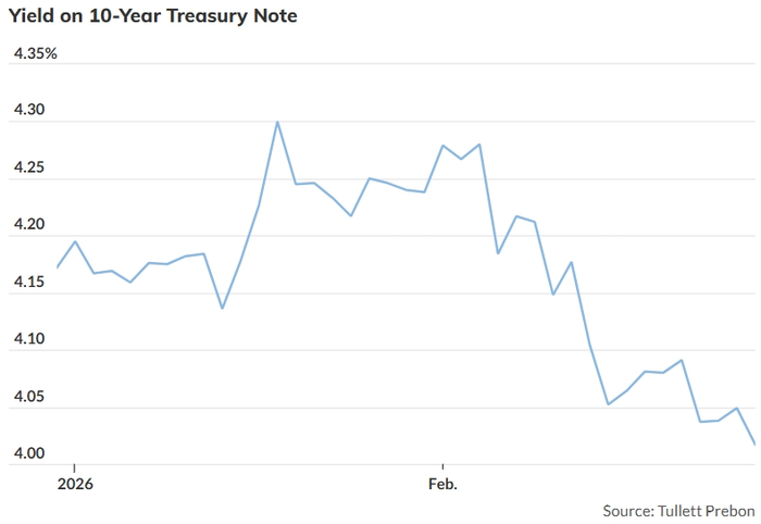数据显示,周四,美国基准10年期国债收益率收于4.02%下方,报4.015%,创下去年11月26日以来最低水平。10年期美债收益率通常被视为30年期固定抵押贷款利率的定价基准。同日,30年期国债收益率跌破4.7%,报4.665%,为过去三个月以来的最低水平。值得注意的是,本轮收益率下行并未伴随重磅经济数据发布或其他非AI相关重大事件。