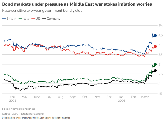 伊朗冲突爆发后,交易员已完全排除美联储年内降息的可能;欧元区市场预计将加息三次,英国至少加息两次,而此前市场均预期这些经济体将开启降息周期。新兴市场的货币宽松进程也因此中断。