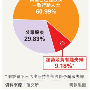 资料显示,赵薇及黄有龙于去年12月20日以每股平均价1.6港元购入逾19.3亿股阿里巴巴影业股份,涉及资金达30.88亿元。根据公司中期业绩资料,赵薇夫妇此次所购入股份,和早前辞任的公司前主席董平所持阿里影业股权数目完全一致,同时一直被列为阿里巴巴一致行动人士的董平,在同月22日突然拆分申报,或意味董平已沽出所持股份,是赵薇夫妇买入股份的卖家。