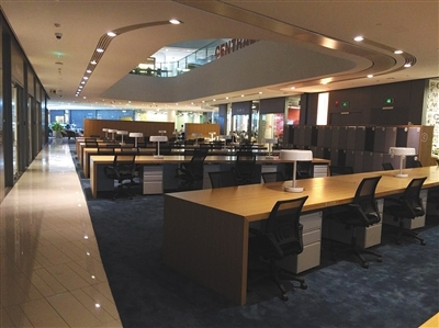 光华路SOHO的3Q共享办公空间,有一些工位没有租出去。