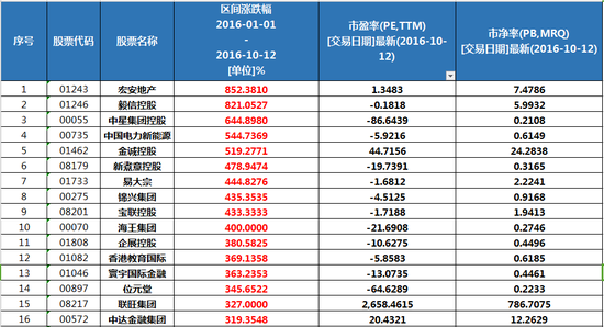 在牛气冲天的港股中,智通财经统计,2016年年初截至10月12日,除去停牌的51股,港股市场累计上涨的股有772只股,累计下跌的有1108只股。