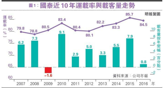 国泰去年载客量增长7年新低 分析:票价下跌是主因