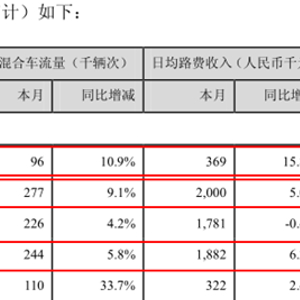 从这张数据表中可以看出,从日均混合车流量而言,水官延长段(即清平高速一期)的增速为最快,其次是梅观高速,继之才是机荷高速东段、水官高速和机荷高速西段。