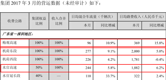 在这样亮眼的经济数据背后,虽然除南山、坪山外,其它各个区的数据尚未出炉,但从深高速(00548)一季度的一张运营数据表,却可以看出端倪。