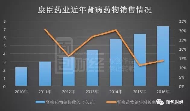 除了交投不活跃之外,康臣药业此前股价低迷还有一个比较明显的原因,就是主打的肾病药物增长率下滑。