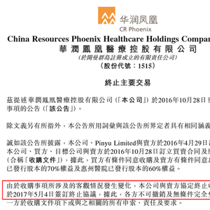 5月5日,华润凤凰发布公告,宣布终止之中信医疗入股事宜: