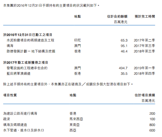 其中参与过的重大项目中就包括港珠澳大桥的填海、造堤,沙田至中环线项目、昂船洲大桥工程、印尼公主港电厂以及维多利亚港出航道平整工程等。